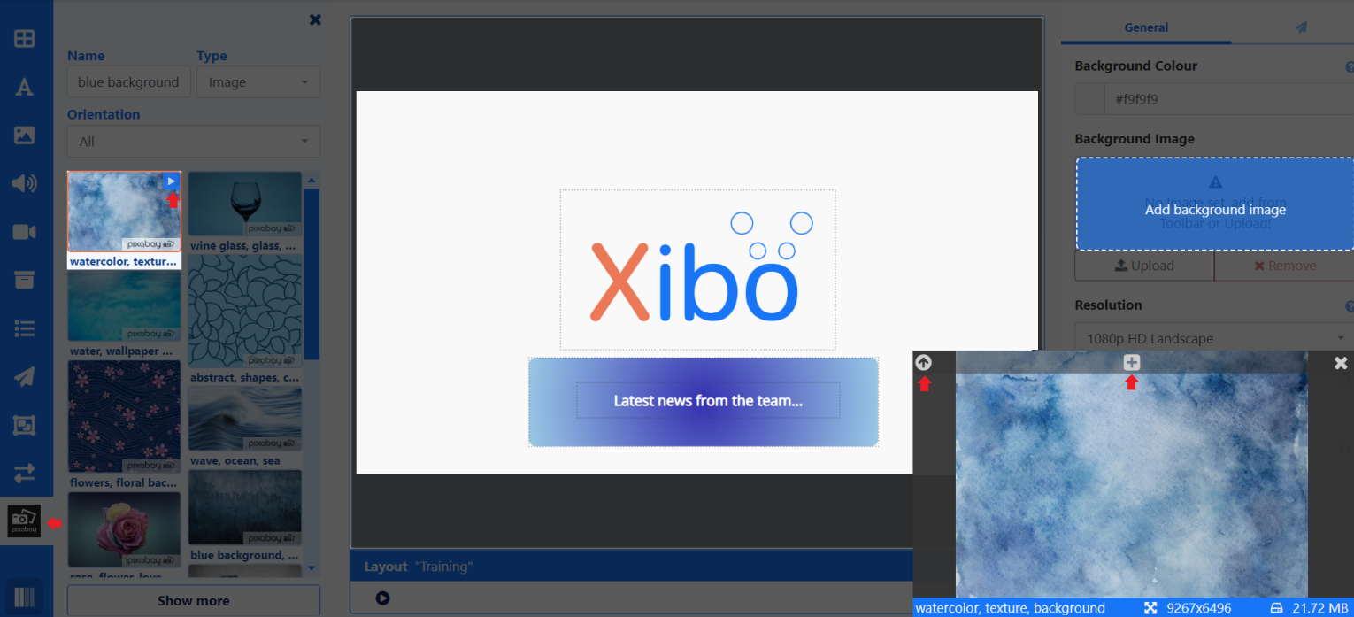 Integration from Pixabay gives users additional resources to Image and Video files which can be added to Layouts without having to leave the Layout Editor to source.