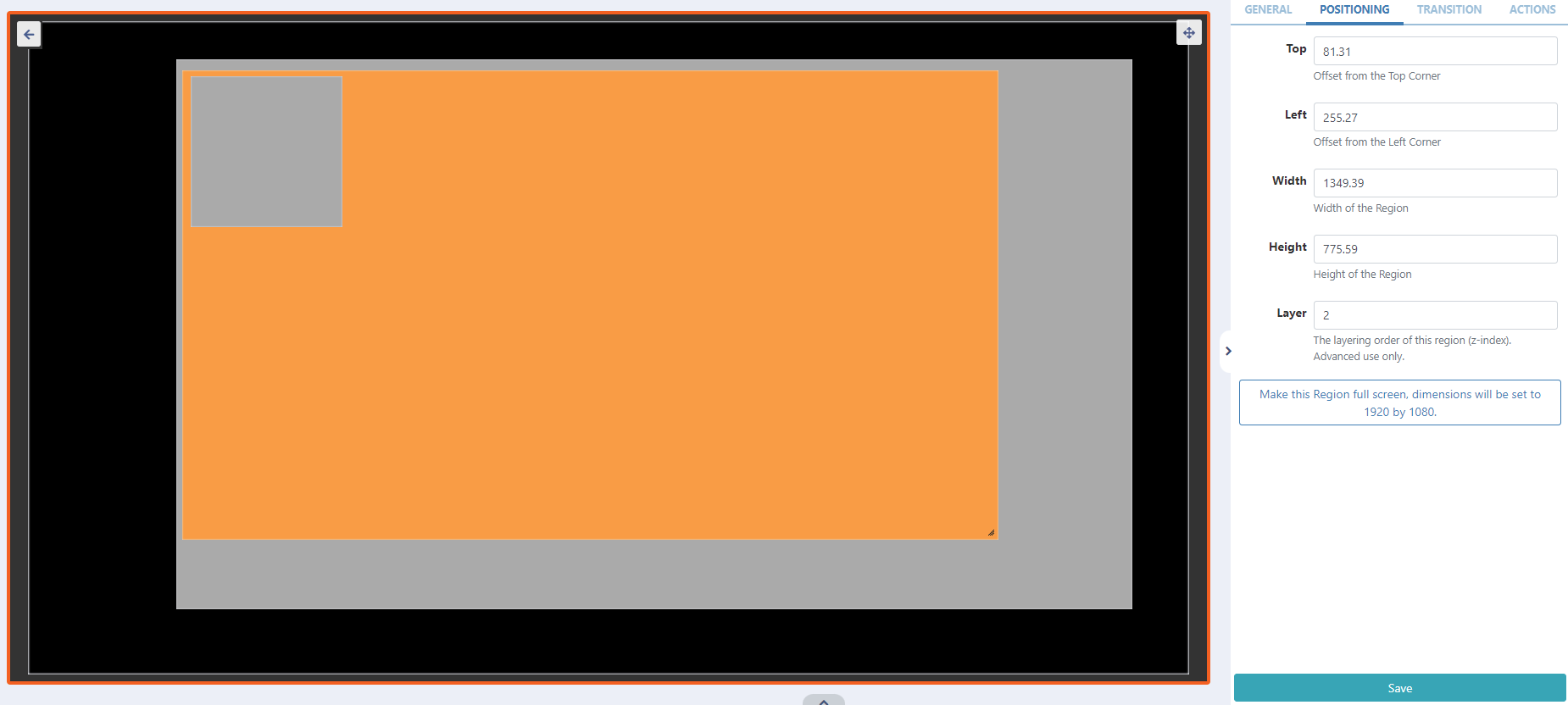 - Use the Positioning tab for more precise sizing and positioning of Regions, as well as setting a Layering Order for playback.