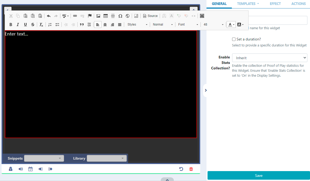 The text editor will open with the same background as selected for the Layout and will use a complimentary text colour for the chosen background colour.