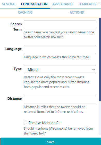 - Use the drop down to select the Type of Tweets to be returned; based on popularity, most recent or a mixed.