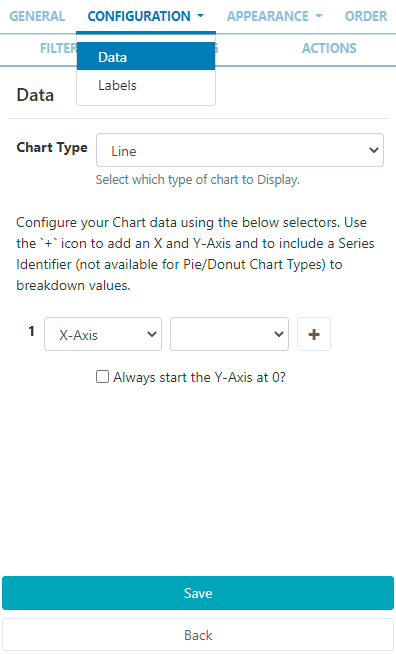 チャートウィジェットは、データセットと組み合わせて、情報をチャートとして表示するために使用します。