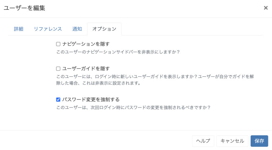 - ユーザーが次回ログイン時にパスワードを変更するよう強制する。